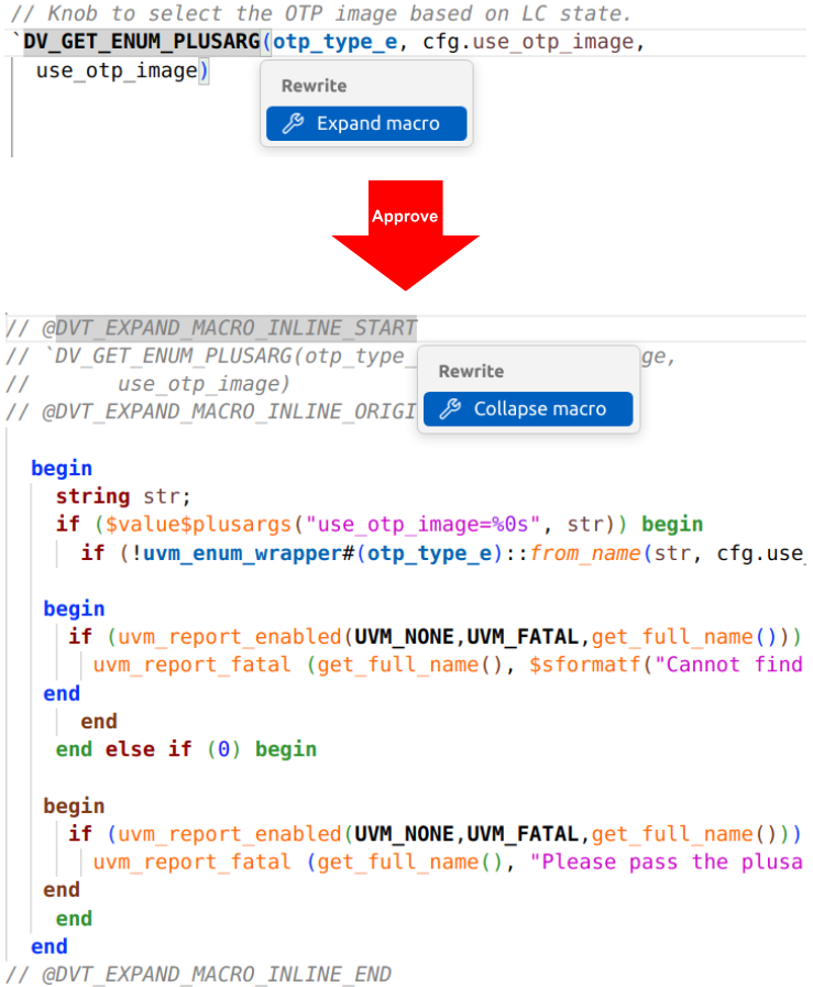 By far the biggest complaint about UVM is its reliance on macros. They make code much more concise and readable, but they also hide a lot of information. Expanding macros can be extremely valuable, especially during debug. As shown in Figure 7, the IDE supports both expanding and contracting macros automatically.