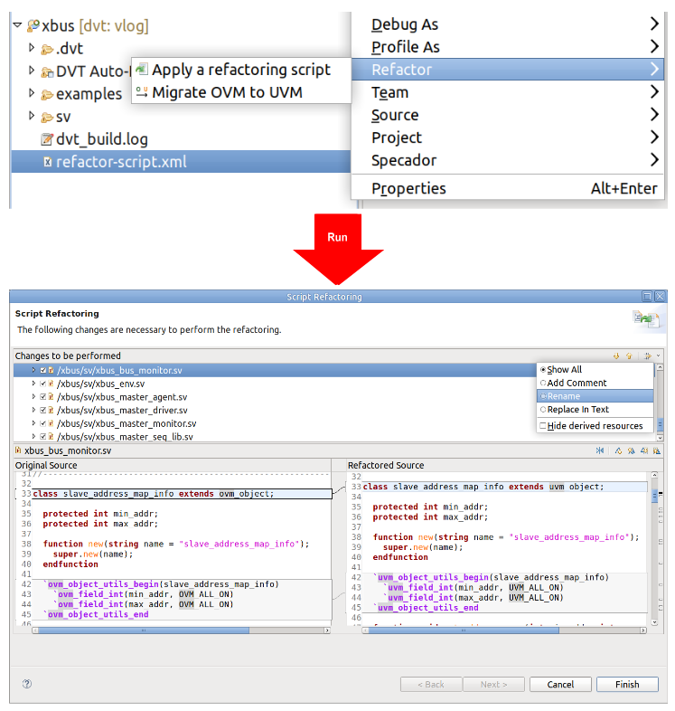 Here’s exactly how you can apply DVT IDE’s code refactoring features if you find yourself in any of the use cases discussed above with your Verilog and System Verilog capabilities: