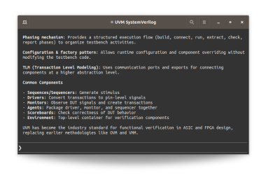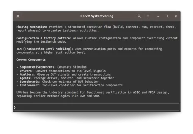 DVT MCP Server provides access to essential tools for real-world design and verification projects. By closing the feedback loop on code generation through on-the-fly compilation and precise error reporting, it enables iterative generation, validation, and correction of code.